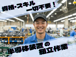 | 仕事内容 | マニュアルに従って、半導体製造装置の部品の組立業務(ネジ締めや配線など) のお仕事です。 丁寧な研修もありますので、安心してスタートできます♪ ※知識や経験・資格は問いませんので、未経験の方も大歓迎です。 |