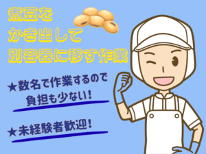 | 職種 | 【高時給!】蒸した豆を釜から容器へ移す作業 |