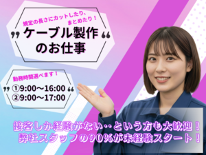 8:50~14:00 *実働5h、休憩10分 *シフト制 *週3日~4日勤務 *土・日どちらかの出勤できる方 出勤の日数、曜日はご相談下さい。 |